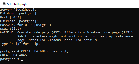 CREATE DATABASE test_sql;