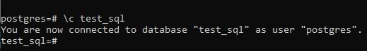Ketik \c test_sql untuk terkoneksi ke Database test_sql
