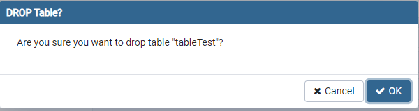 Klik OK pada tampilan konfirmasi untuk menghapus Tabel Database