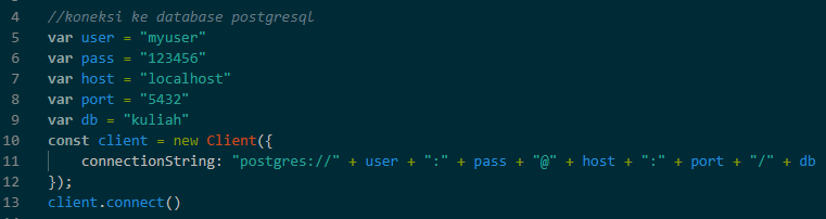 Lalu Koneksikan Database PostgreSql dengan cara berikut