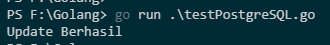 Ketikan “go get -u github.com/lib/pq” untuk menginstal Module postgreSQL Golang