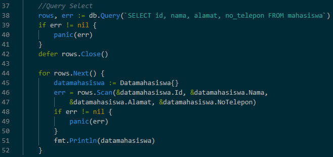 Pertama-tama kita harus mendefine struktur Data untuk tempat menyimpan Data hasil Select nanti
