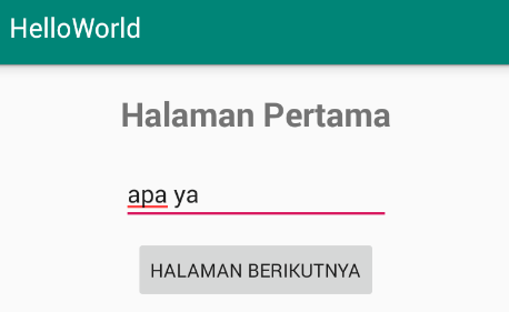 Jika Tombol Halaman Berikutnya di klik, maka akan pindah ke Aktiviti Kedua dan menampilkan isi yang di tulis pada Aktiviti Pertama